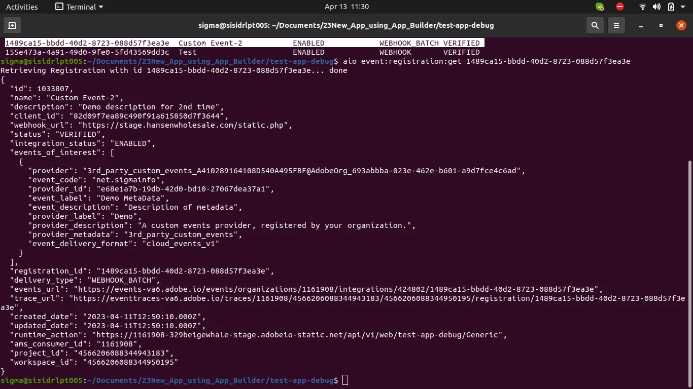 When i run events_url (https://events-va6.adobe.io/events/organizations/1161908/integrations/424802/1489ca15-bbdd-40d2-8723-088d57f3ea3e) as get method in postman then i got below response: