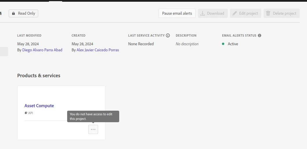 I have a problems with the acceso to the API Asset Compute, someone knows what access I need to can edit this project?