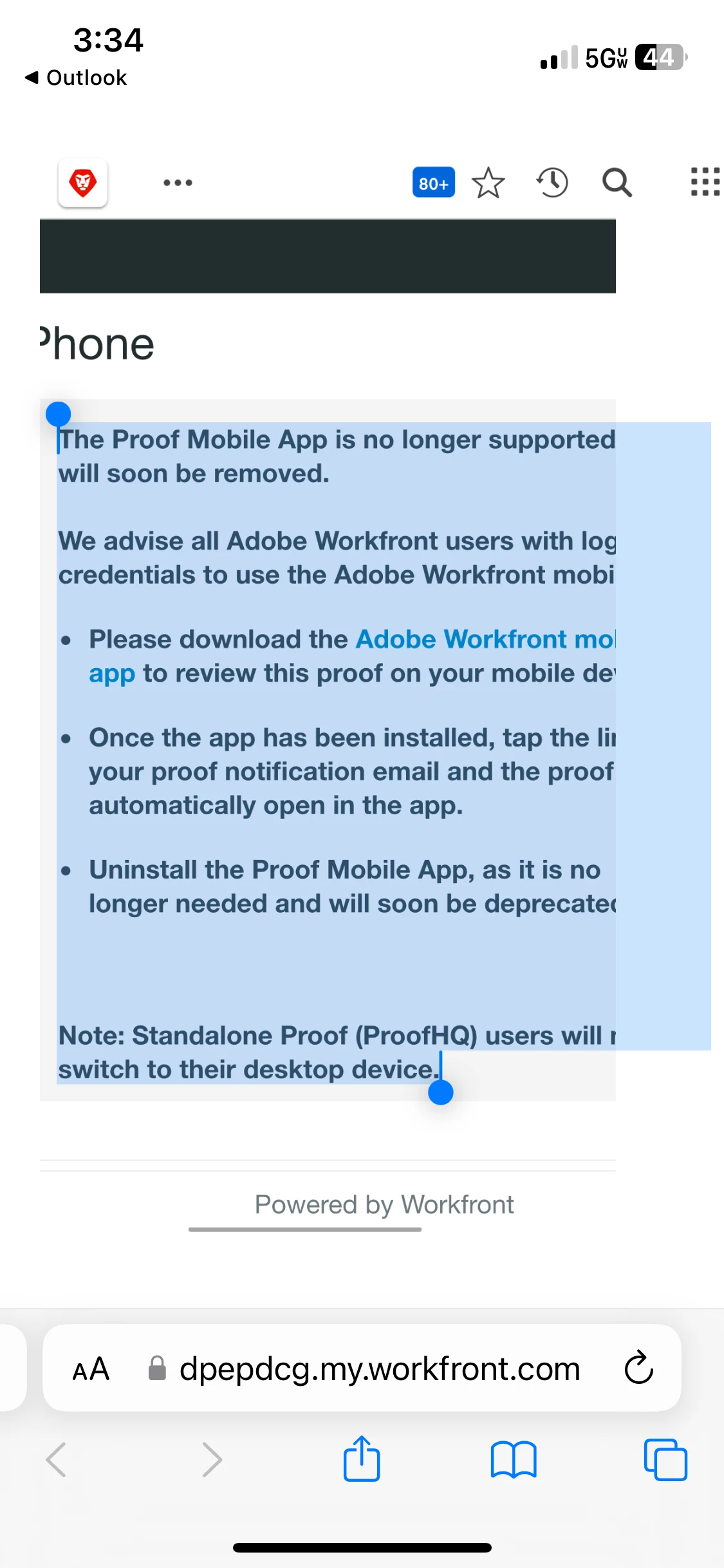 - When clicking the "Go to Proof" link on a desktop system, all browsers (Safari, Chrome, etc.) allow access without requiring an additional Adobe Workfront login.