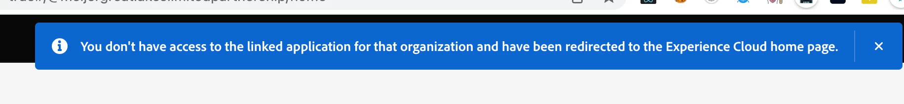 You don't have access to the linked application for that organization and have been redirected to the Experience Cloud home page.