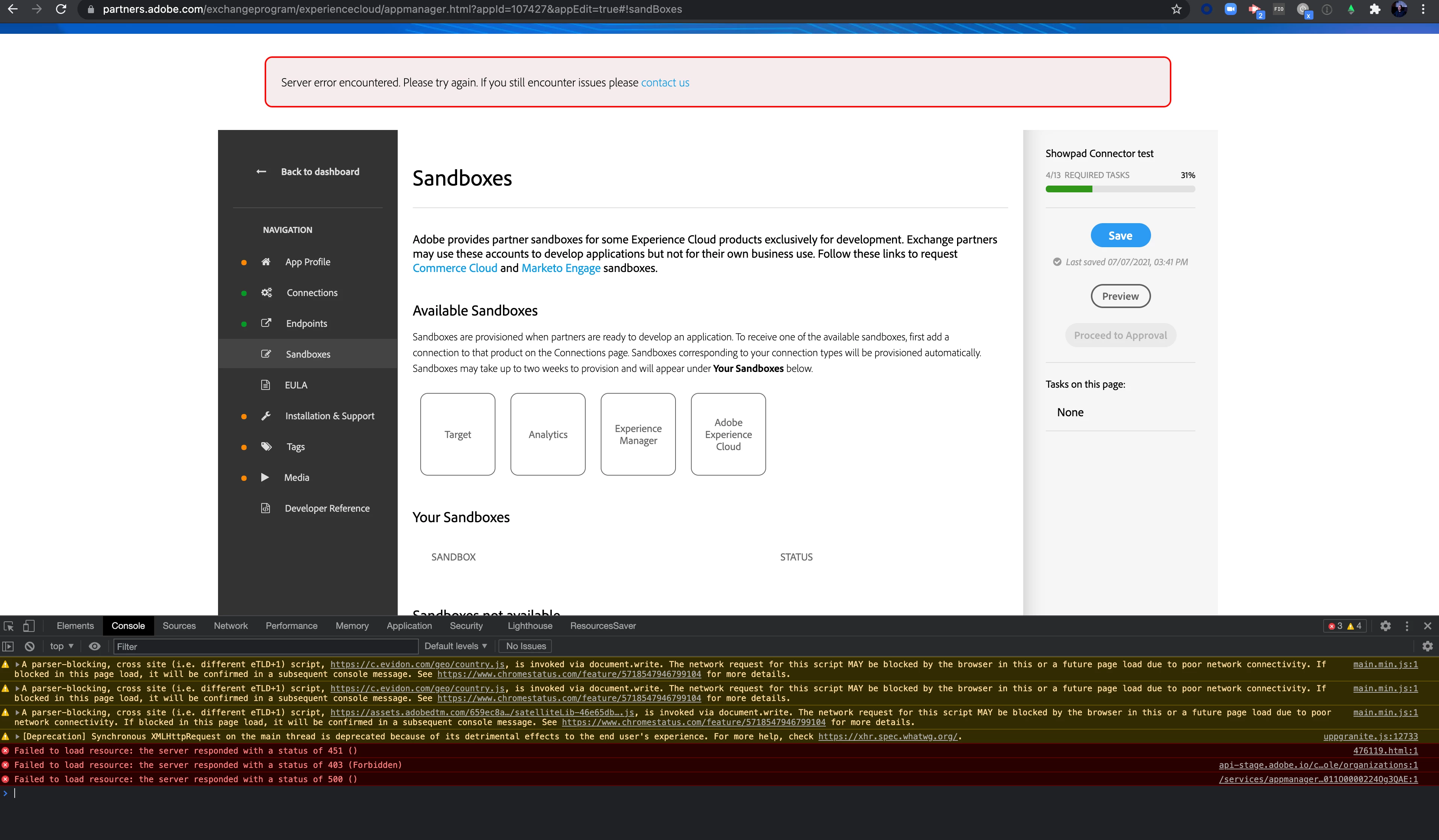 I'm trying to get access to our AEMCaaS sandbox. The site errors out.