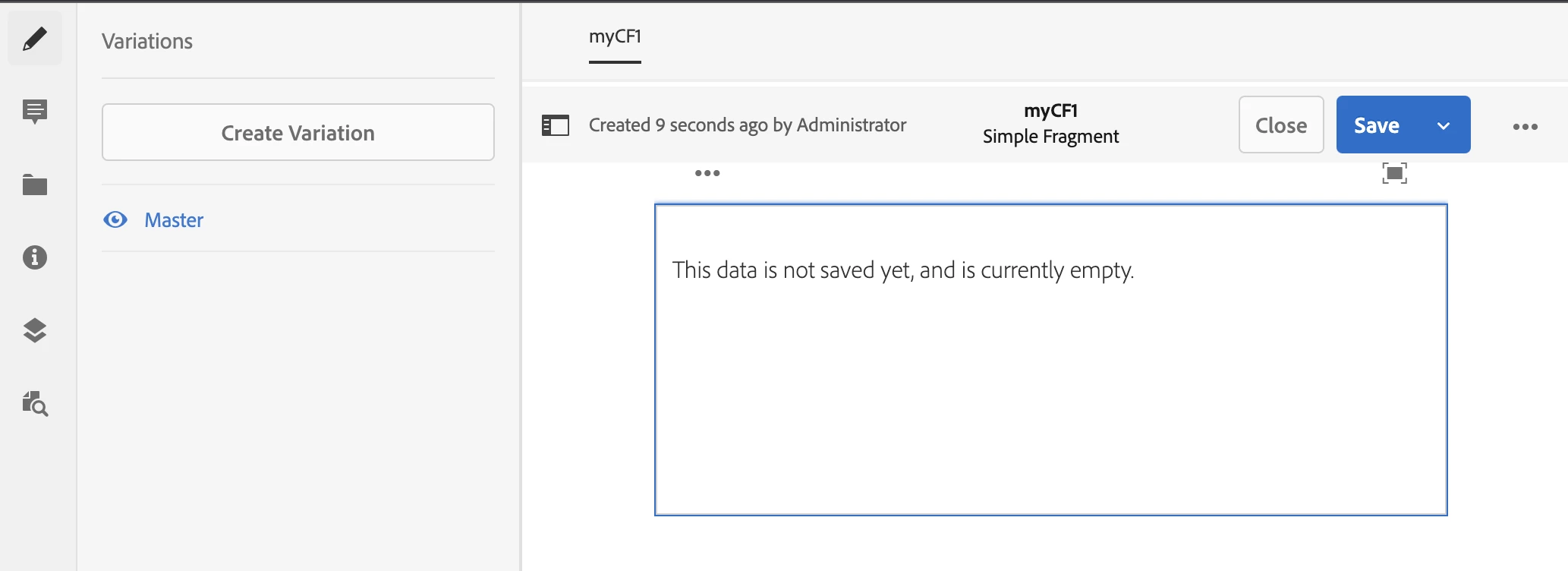 When a blank CF is created, it is in a 'saved' state.