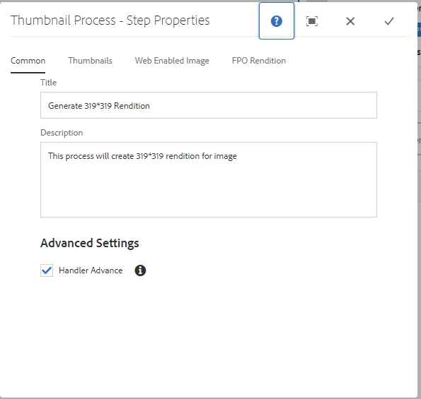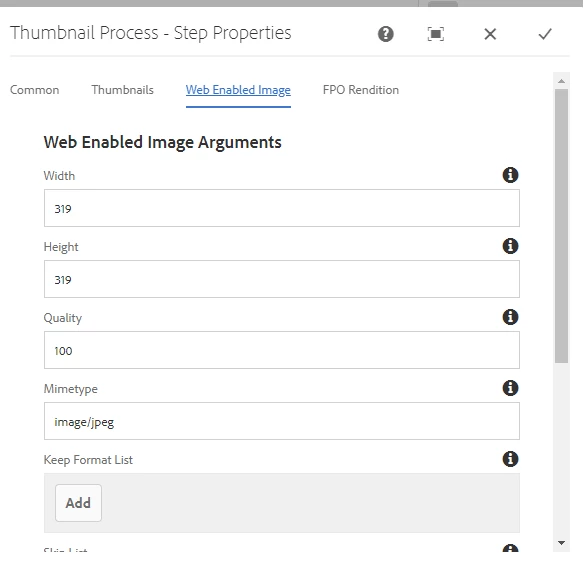 I used the OOB functionality to create a custom rendition of 300*300 jpeg image as below with .jpeg extension.