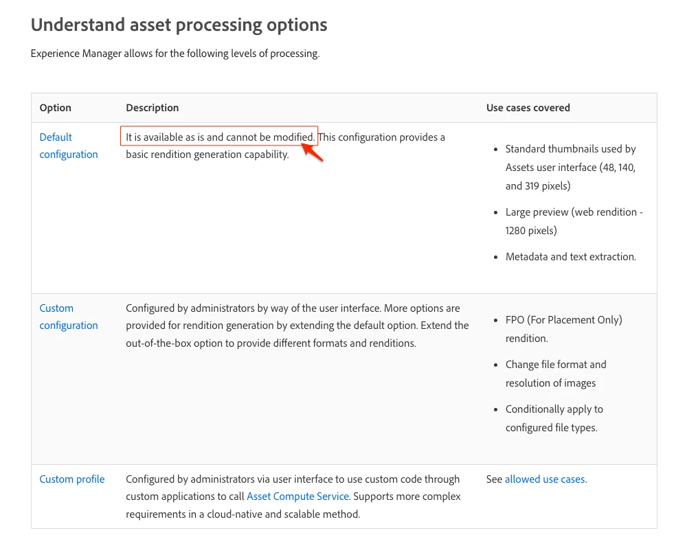 - Result: This configuration did not remove the additional renditions. Instead, it added a new rendition to the existing out-of-the-box AEM renditions.