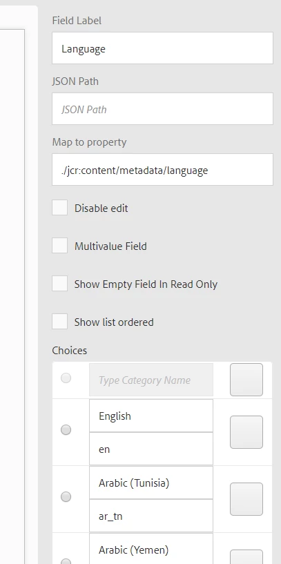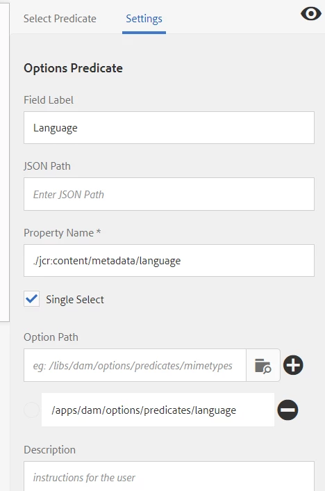 Adding search predicates for tag lists has worked well. I have a Language dropdown in the schema that I would like to be able to search against. Would I create an options list node for those languages and use that node path in the Options field for the Language predicate in the search rail?