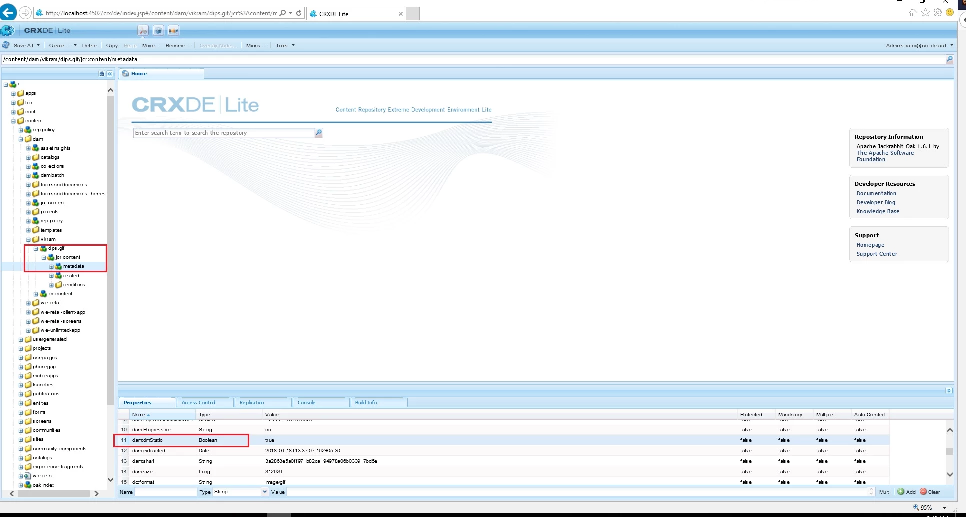 As I already mentioned, once you have uploaded your Animated GIF image on your AEM instance, you need to create the property "dam:dmStatic (boolean)" in the "metadata node" of the image. (just like the Screen Capture on the post)