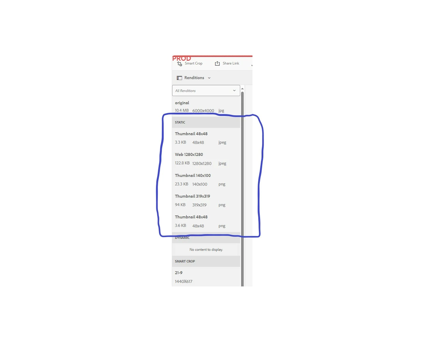 We've got 5 static image renditions created on upload to provide thumbnails for Assets to use when displaying the image in card or list view etc.
