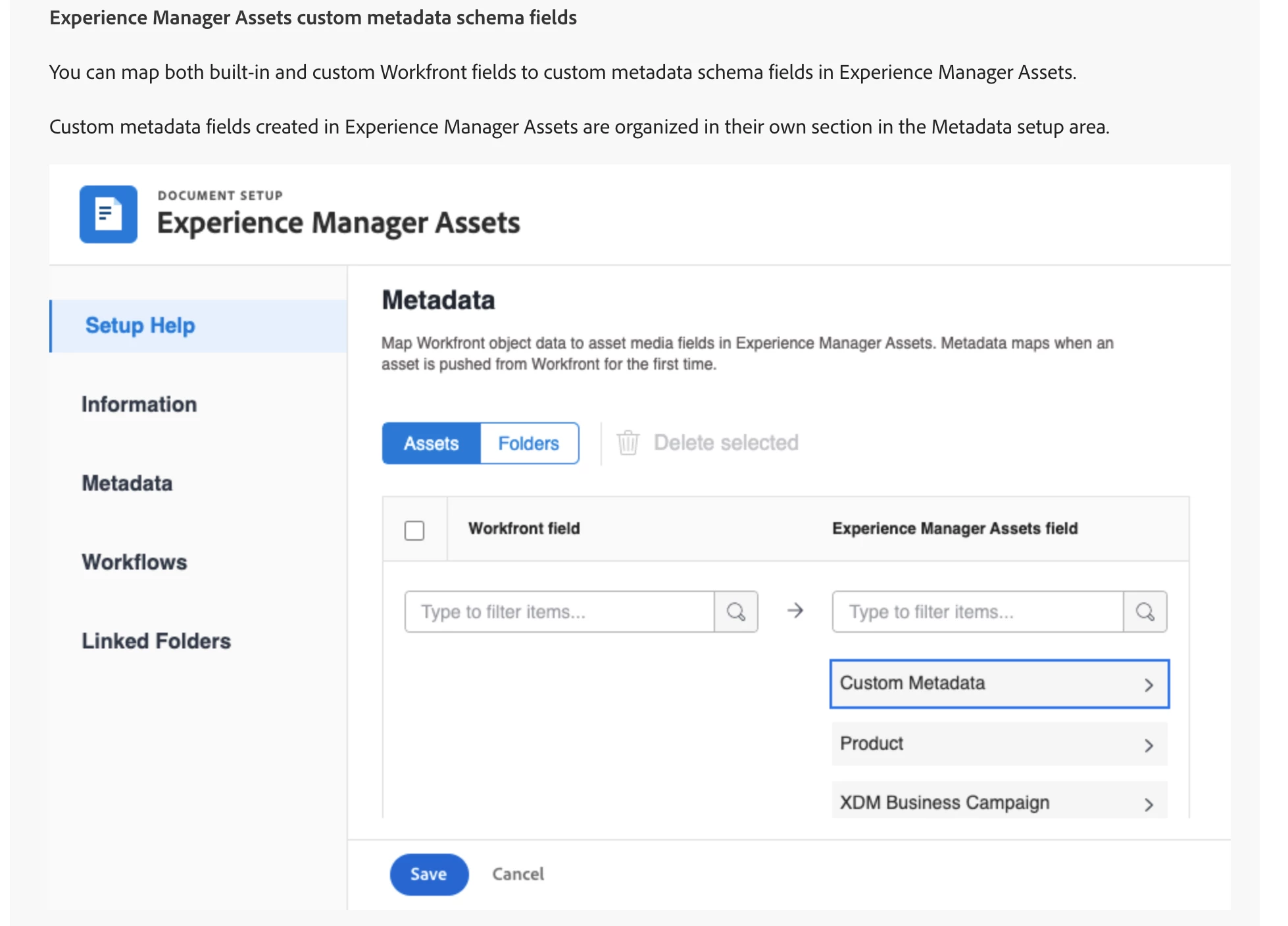 How can we map metadata from Workfront to AEM Assets tags?