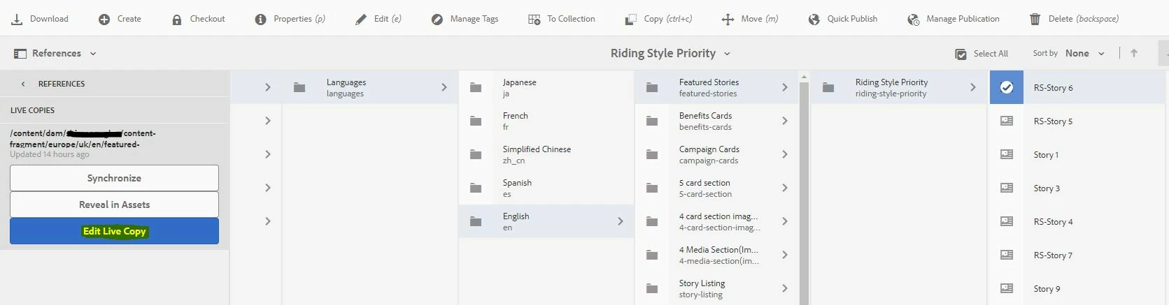 I have created a content fragment in "en" language and have created live copy of the CF inside "/europe/uk/en/".