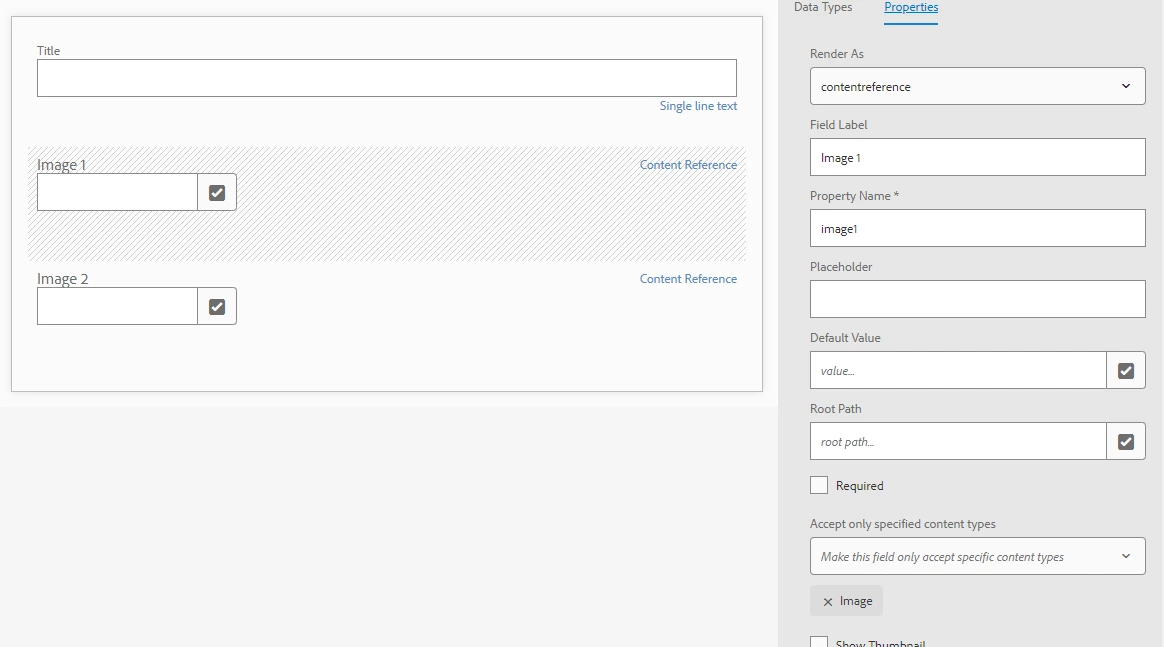 { imageTestList{ items{ title image1{ ... on ImageRef { _path _publishUrl } } image2{ ... on ImageRef { _path _publishUrl } } } } }