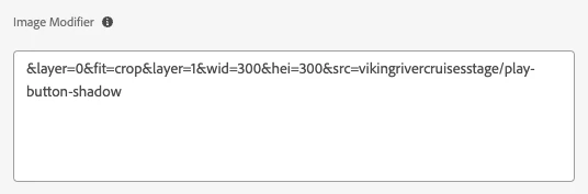 First a little background. I am serving up a Scene7 asset that is made up of two layers, a base image and a play button. The base image layer is a smart crop whose width and height are being constrained by the image preset (1200 x 500). This image preset is also handling the layering of the base layer and the play button.