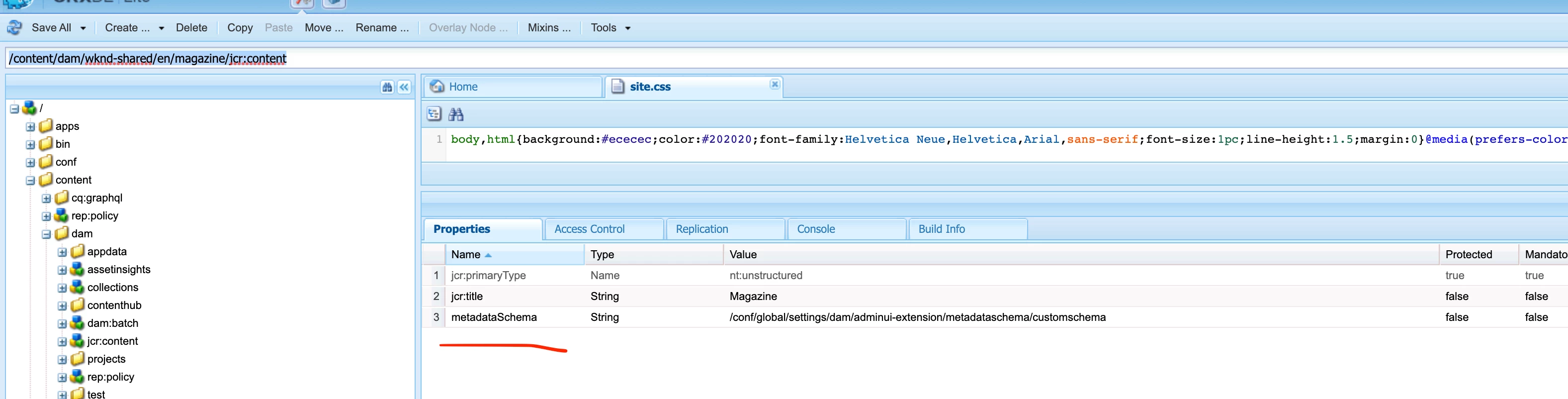 But when I open the asset properties The properties look completely different than on test