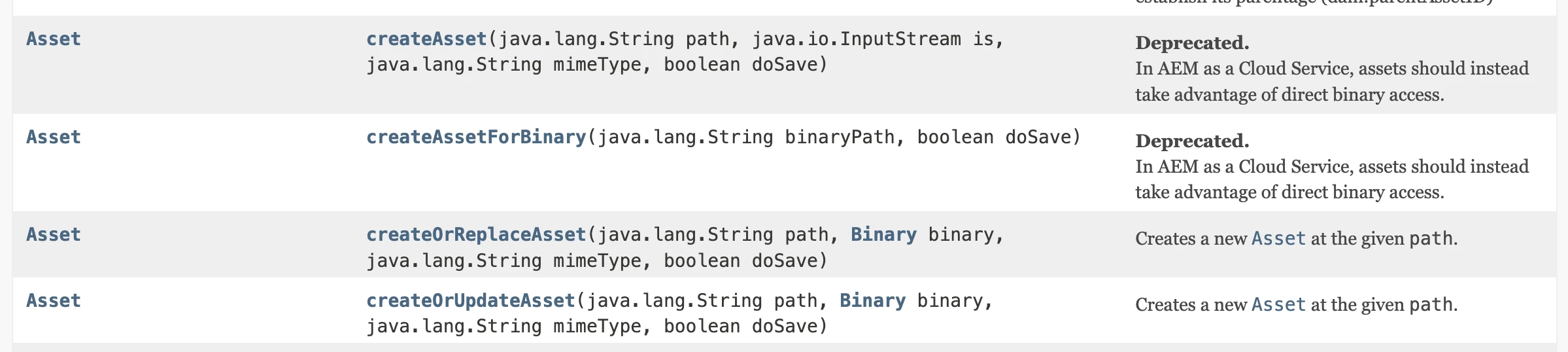 I am creating asset in AEM as cloud service using assetManager.createAsset() method but, I got to know this was deprecated.