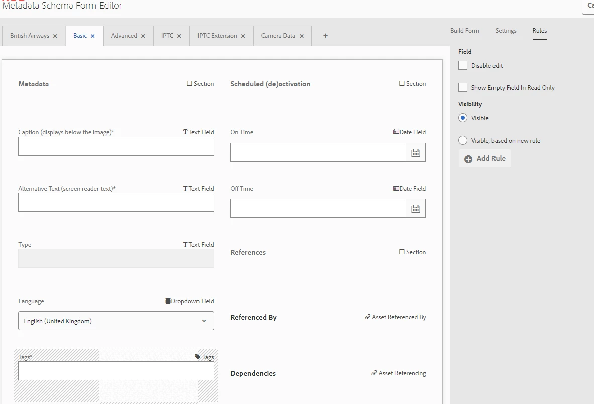 Limiting metadata field entries to defined tags only