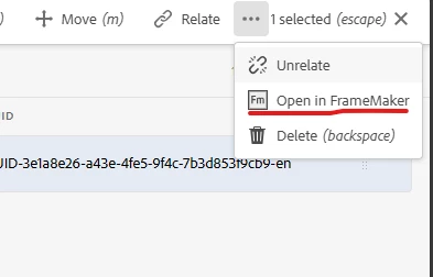 I am using AEM cloud and we have Guides, when we select an asset (dita), we are able to see a Open in Framemaker button which when clicked opens the asset in FM.