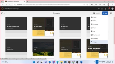 while creating brochures, business card, merge, flyer ,ad, post card there is not templates available so how to create brochures, business card, merge, flyer ,ad, post card templates in AEM.
