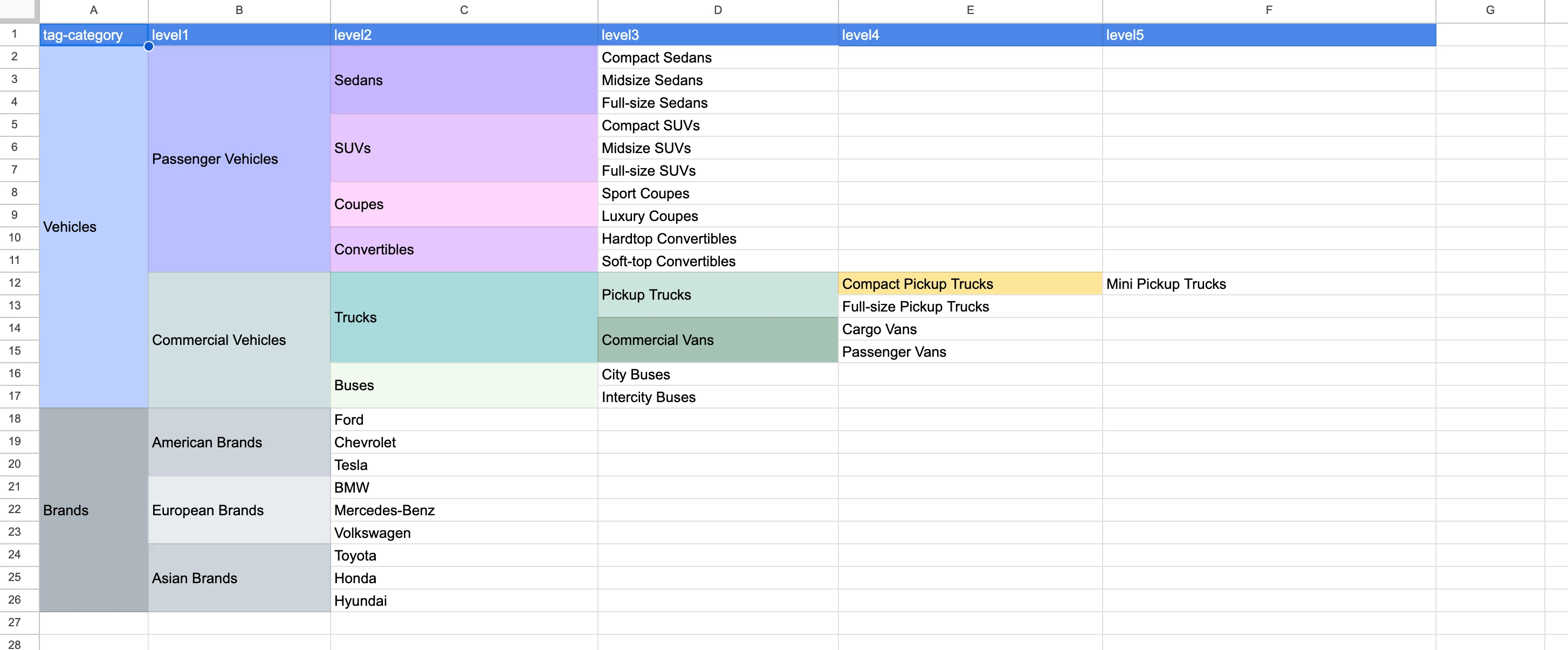 But I am not able to create a nested structure.