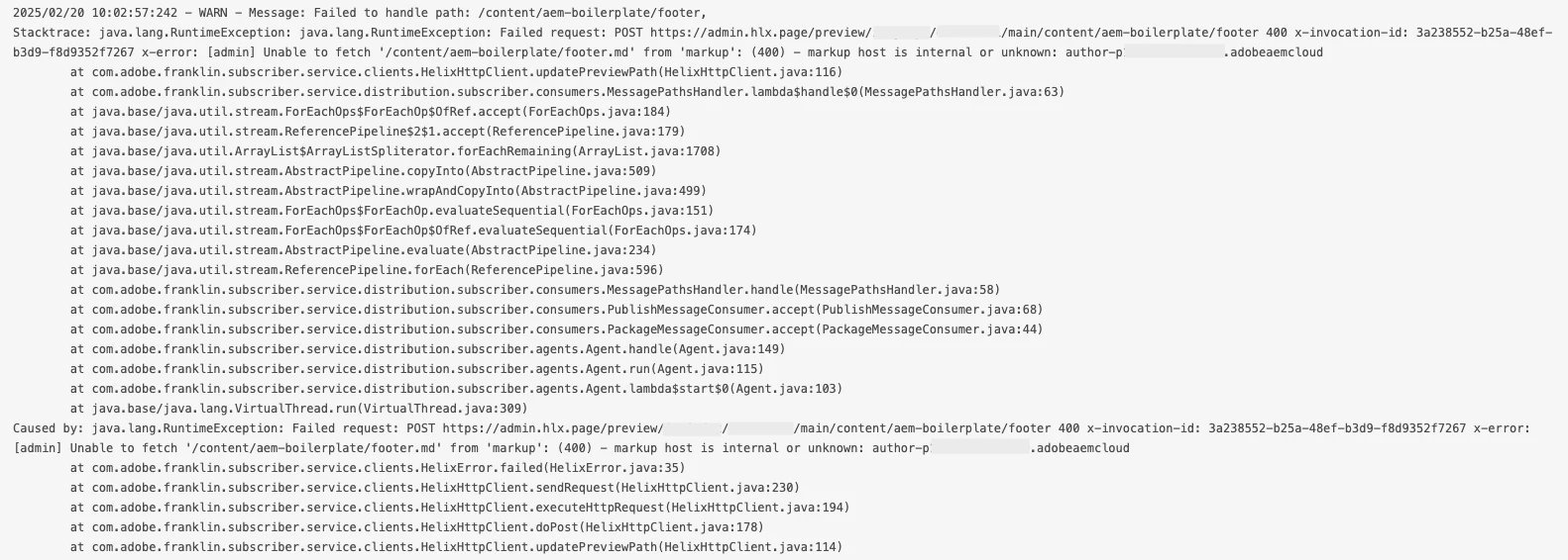 Error while publishing content from Sandbox AEM to Edge delivery Services