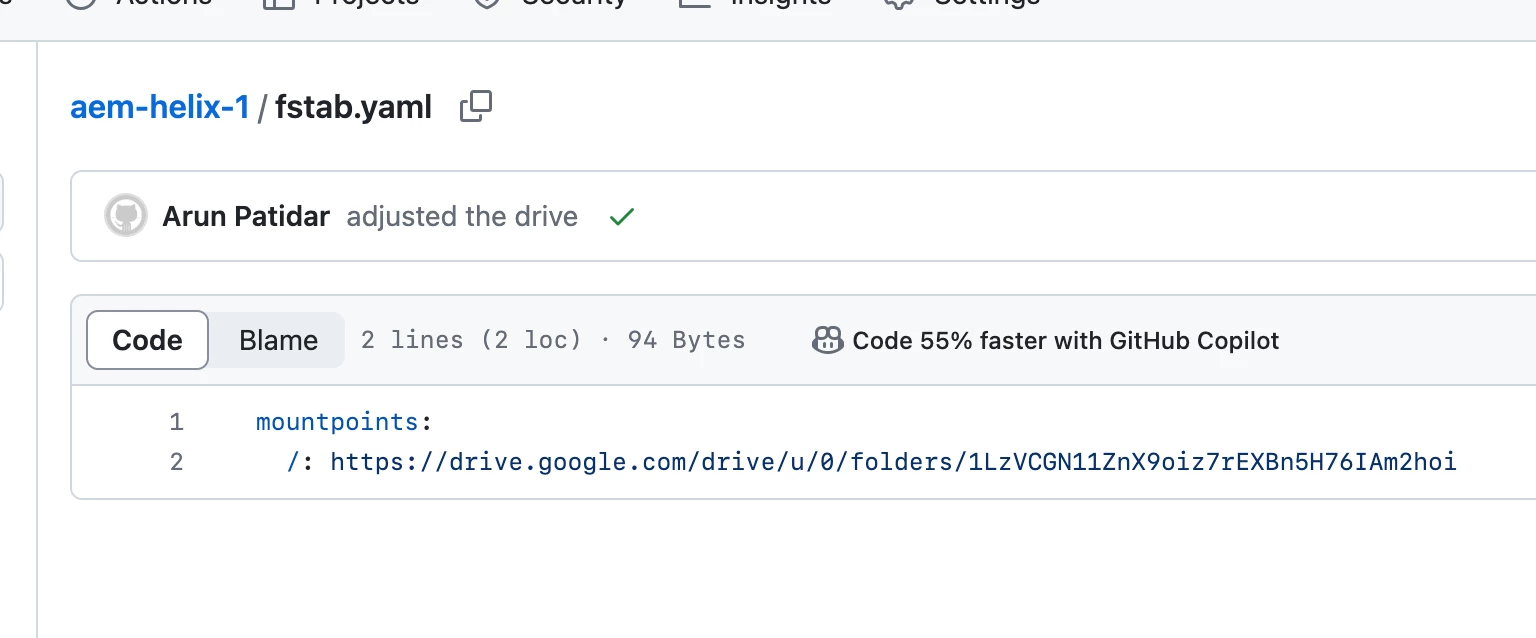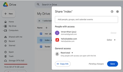 Also, created index, nav and footer documents within this. These documents are also got shared by default with helix@adobe.com as they are child documents.