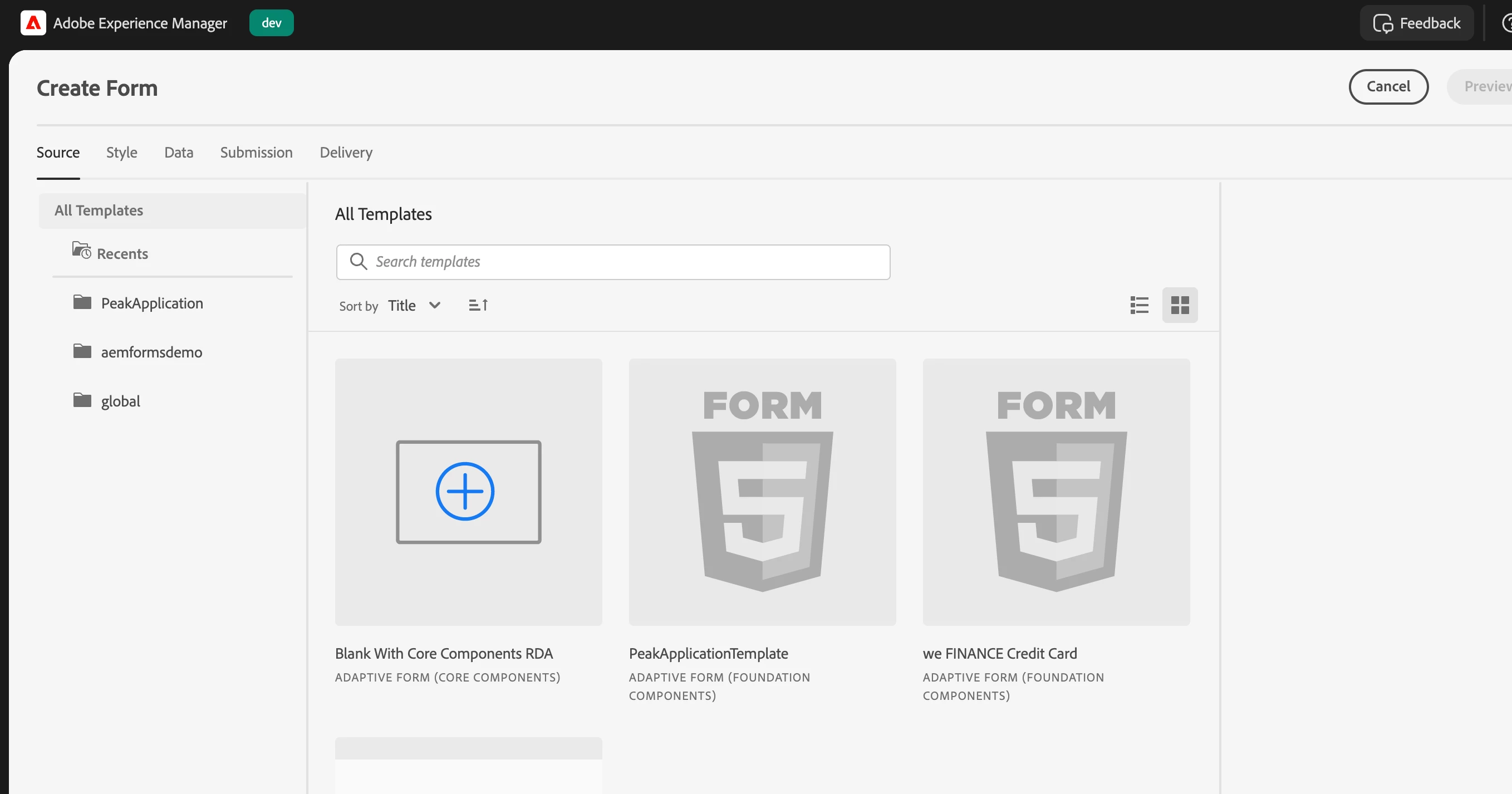 - Clicked "Create" -> "Adaptive Form"