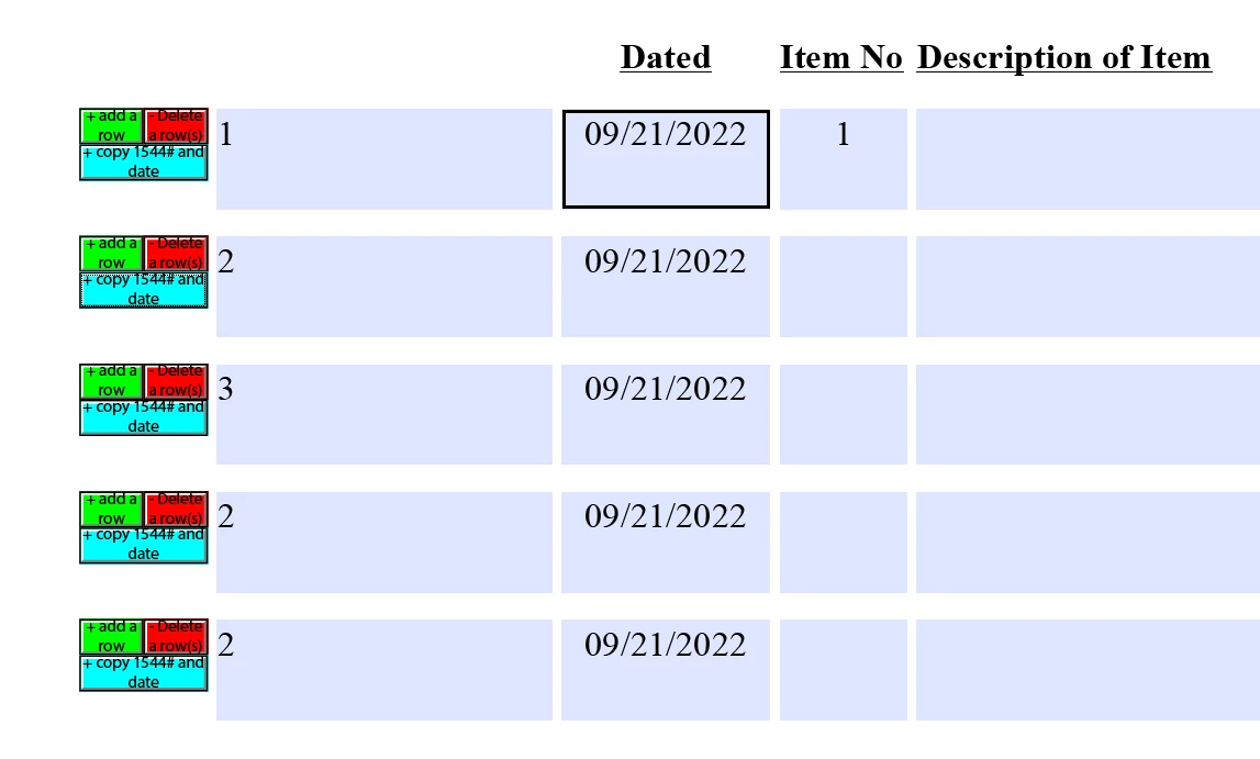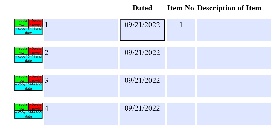 Given you have the following structure: Table1.Row1.Date and the Add button is located in the Row1 as well then this script will copy the date fields data to all following rows starting from the current one and where the date field is empty.