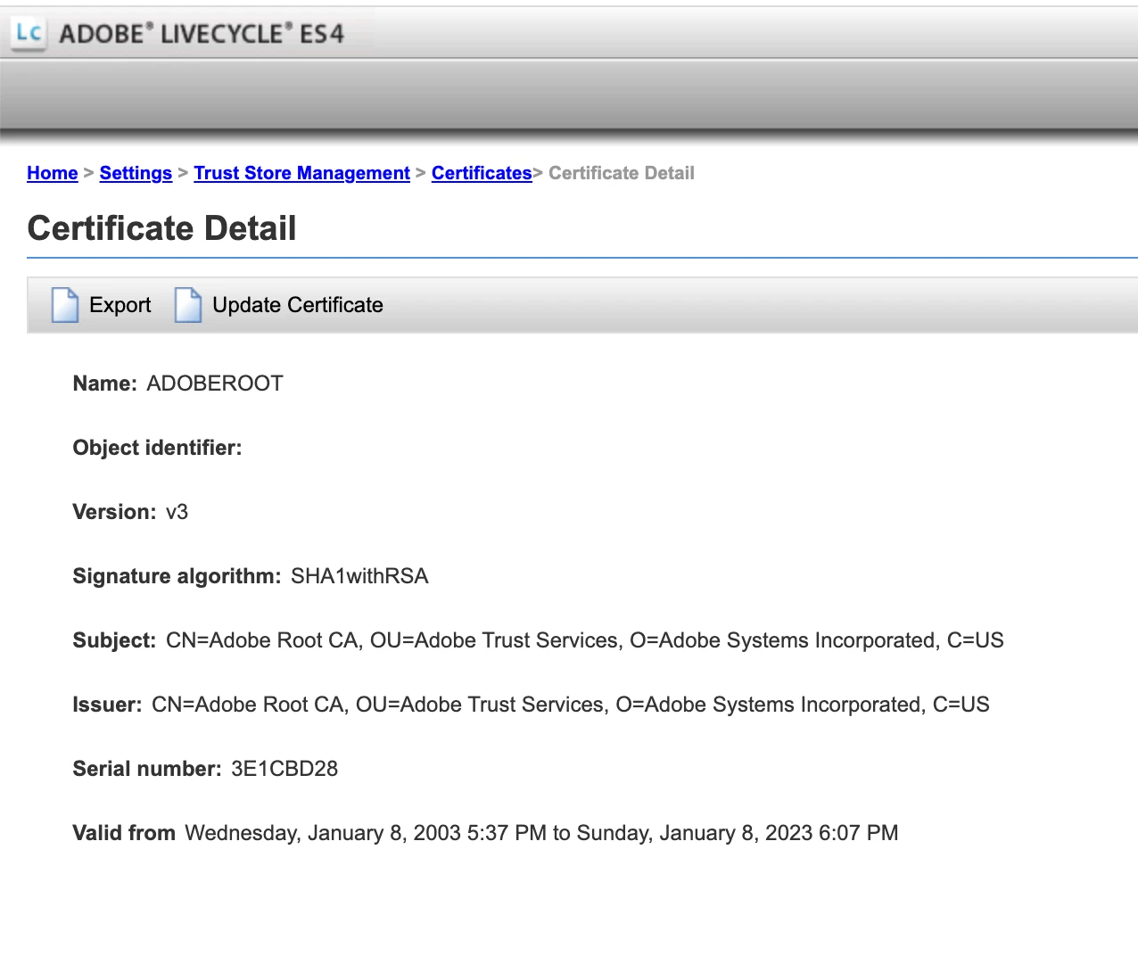 In Adobe ES4, truststore certficate is going to be expire on upcoiming January 8, 2023. Looks like it's a Adobe Root cert, I never updated any cert in Adobe ES4 since installation. How can I get a new Adobe Root CA? Will the new Adobe Root CA be valid for Adobe ES4.