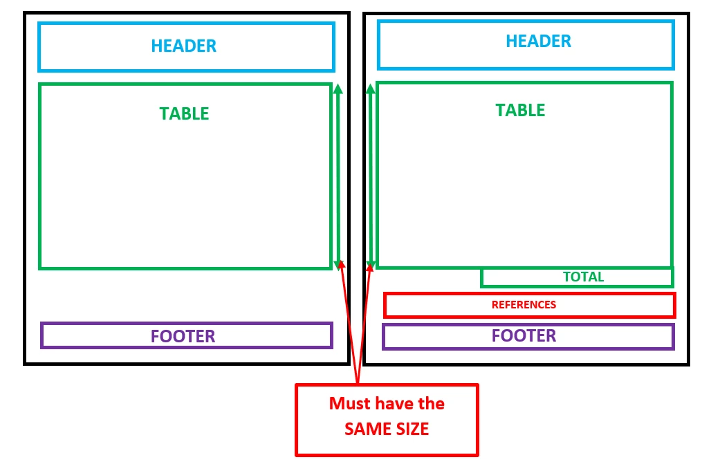 I would like to put the "References" block only on the last page and keep the same size for each part of the table on the multiple-pages document.