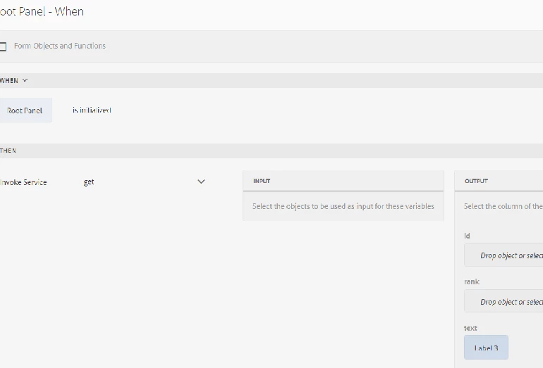 Create an Adaptive form based on the FDM you have created earlier. Create one textfield name it textbox_0 and make it hidden. Go to root panel and create a script on initialize. You need to invoke the FDM service here and set the values coming from the response of service to the hidden field.