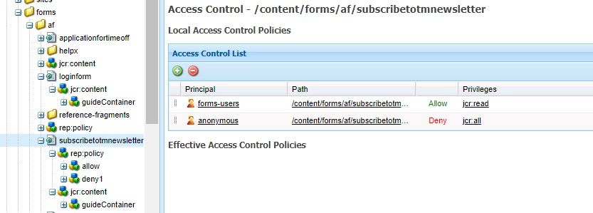 I was reading about CUG, https://docs.adobe.com/content/help/en/experience-manager-65/administering/security/cug.html but the options available for "normal" site pages are not available for adaptive forms.