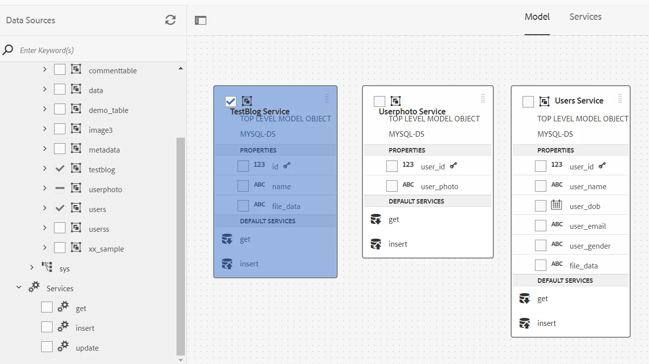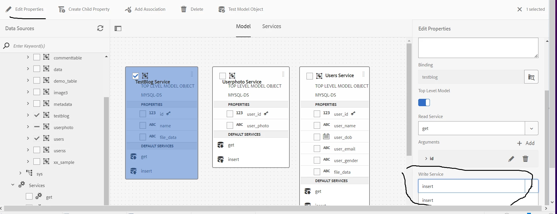 4) Not able to add both Insert/Update Write Service, only able to add either insert or update not both