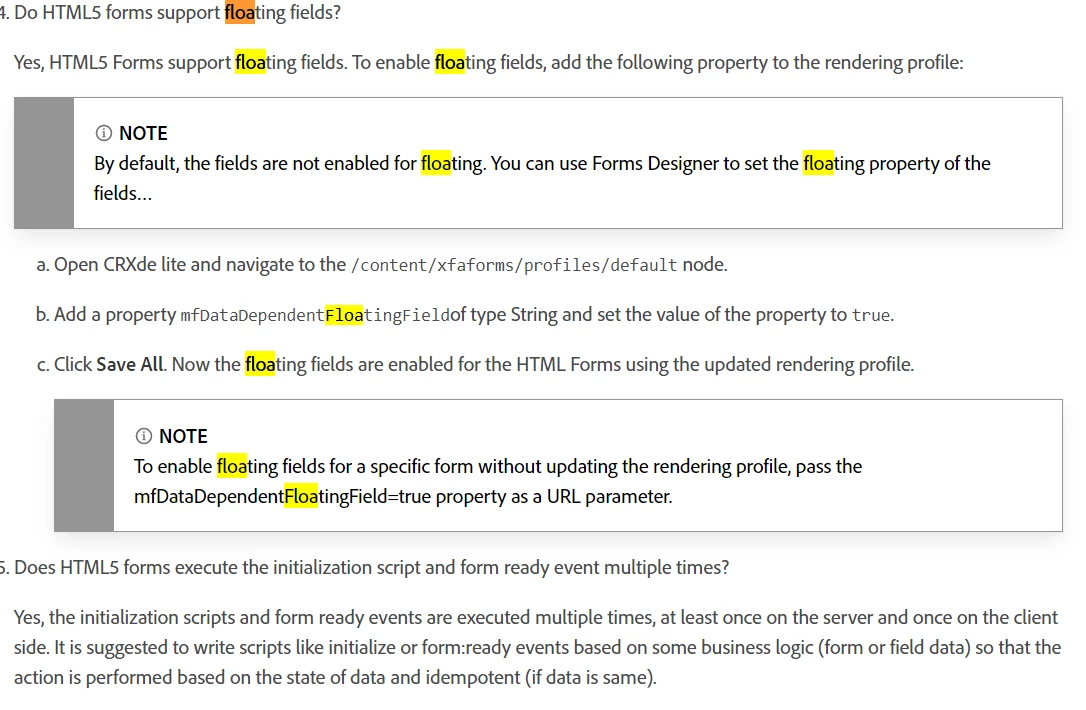 I am recently working on converting PDF forms developed in AEM designer to make them HTML5 Compatible. However i am facing issues with the Floating fields.