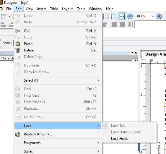 AEM Form - Edit --> Lock Text disabled