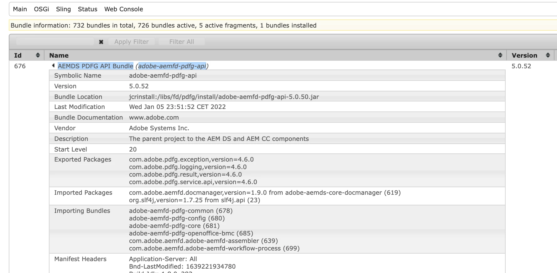 AEM Forms 6.5.11 osgi - com.adobe.pdfg.service.api,version=[3.1,4) -- Cannot be resolved