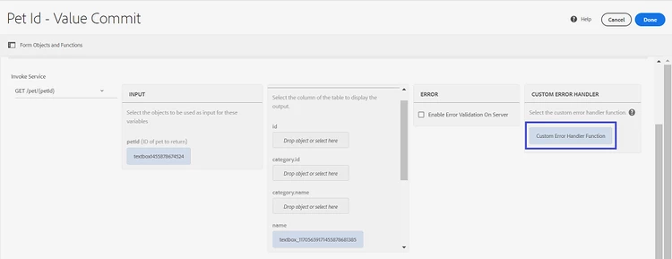 I am connecting to a CRM and invoking a function , using invoke service but unable to add an error handling function per the document or as we could with workflows