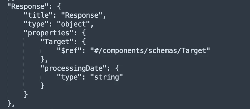 However, when I try to use this service in the rules editor the response fields are not available. What it offers is just one item called response. The openapi definition has different responses per status type and for 200 it mandates the structure in the example below {target.... name.... etc}