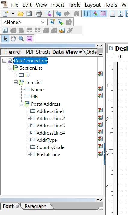 Bind the root of the subforms to either sections1 or sections2