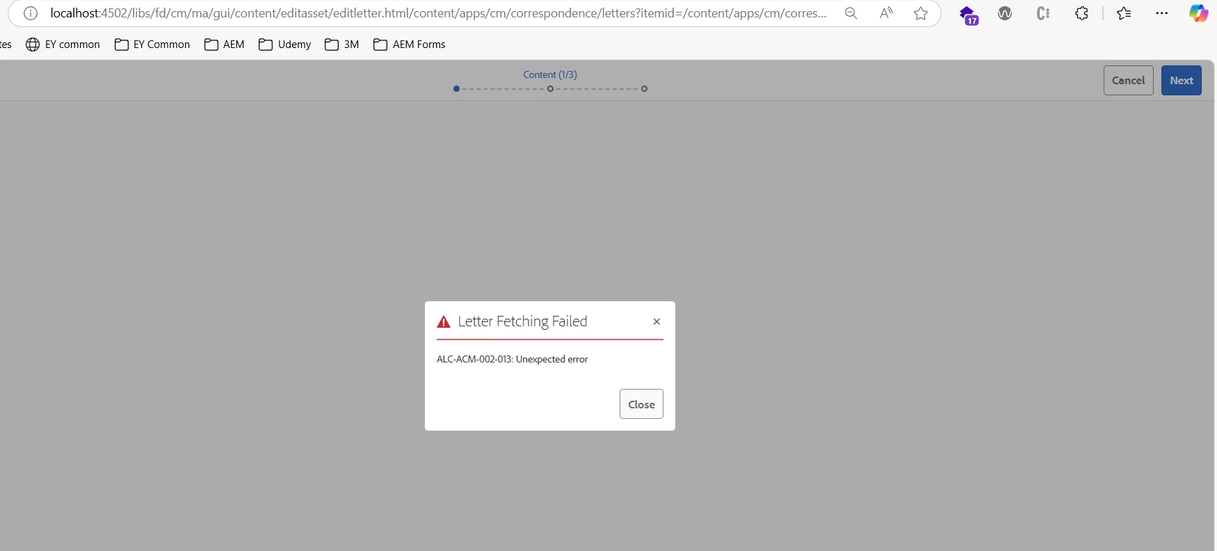 ALC-ACM-002-013: Unexpected error while creating the Letter (AEM forms)