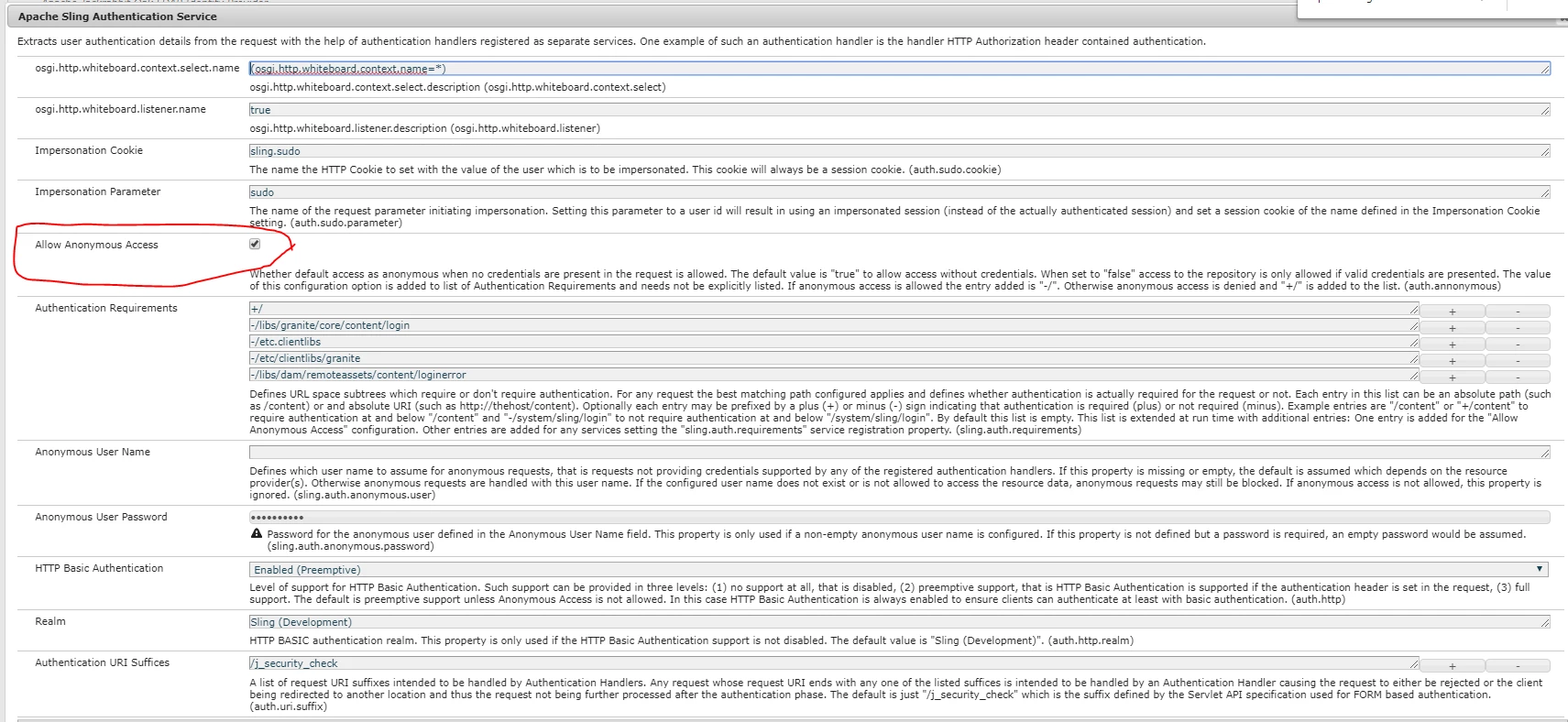 What we want is to have anonymous access so that the iFrame won't be prompted for a log in, the form is meant for public access. We've already set sling Authentication Service to allow Anonymous access, but it still doesn't work. Please advise.