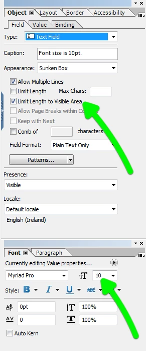 Automatic font size reduction in a PDF form