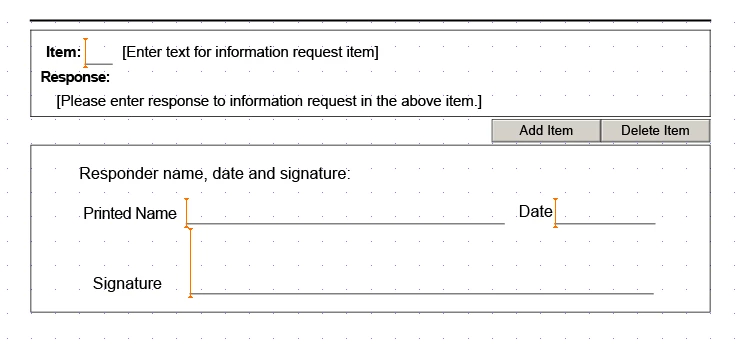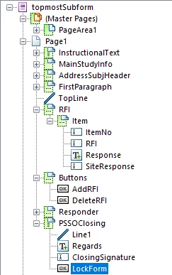 The Subform "RFI" has the repeating subform within it called "Item", Add and Delete buttons create new Item subforms within "RFI"