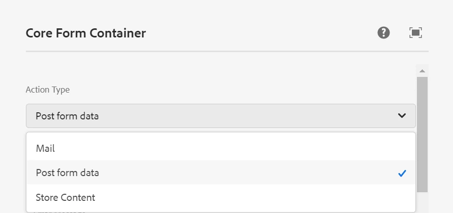 Core Form Container CQ Dialog Action Types Datasource