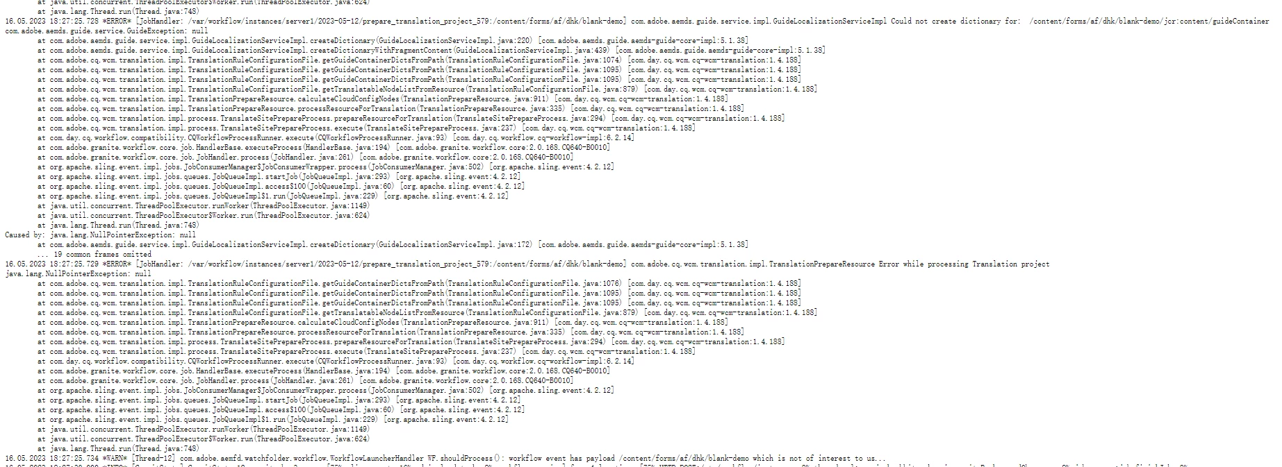 It's the error log after I create a translation project.