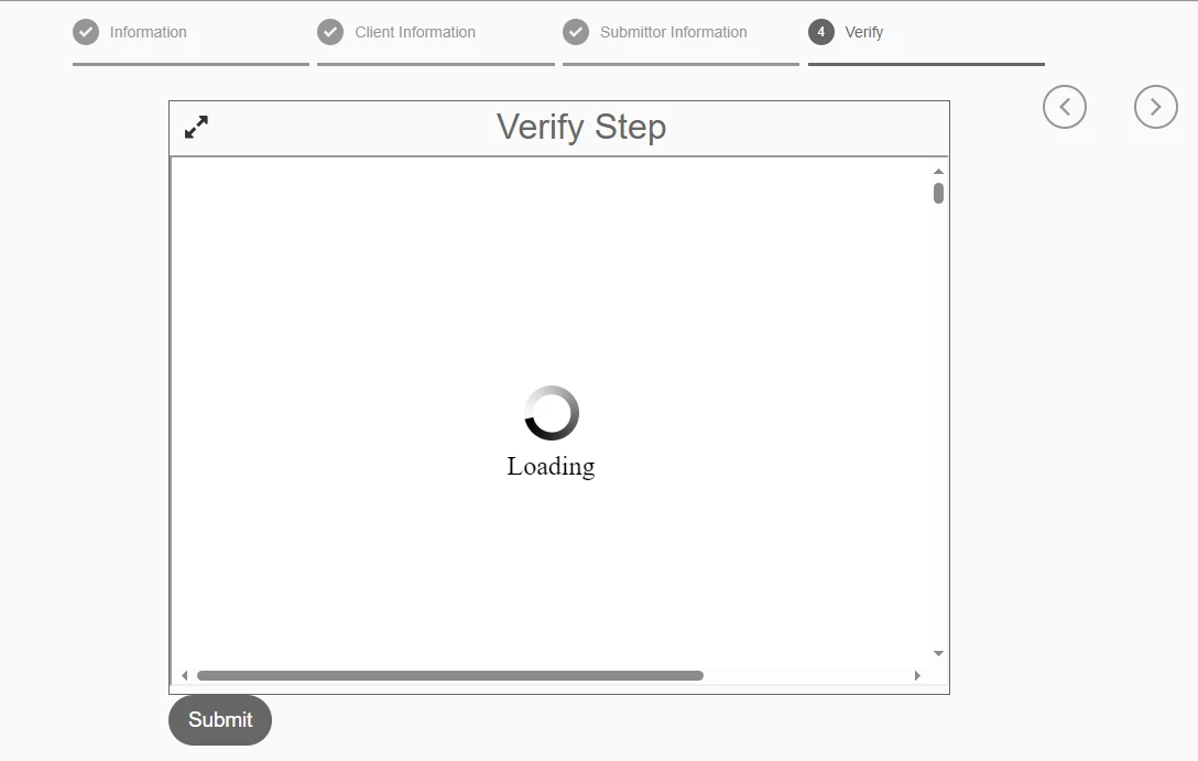 I'm working on an Adaptive Form that uses a custom Document of Record template that was created in AEM Forms Designer. I'd like to use the 'Verify Step' form component to display the generated Document of Record on the last panel of the form. Unfortunately when I try to do this the Verify Step component just displays 'Loading'.
