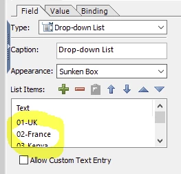 When the user selected the 01-Kenya or example, when I export the form as delimated text I want 01 to export and not 01-UK