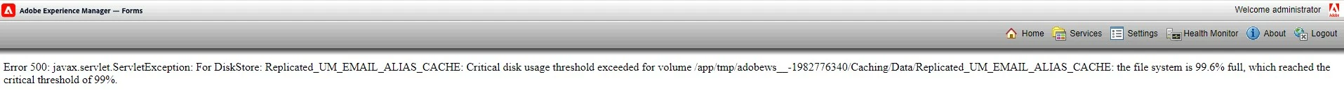 Error 500: javax.servlet.ServletException: For DiskStore: Replicated_UM_EMAIL_ALIAS_CACHE