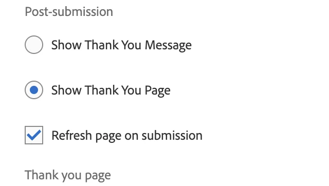 Hi I have form embedded on page with AEM Form component and one of the option is to "Refresh page on Submission". if I enable that option then i'm getting an error during submission. I have setup the form to redirect to another page on submission. if I don't enable that option then redirect page is loaded within Iframe. To properly redirect to another page I need to enable that option "Refresh page on submission".