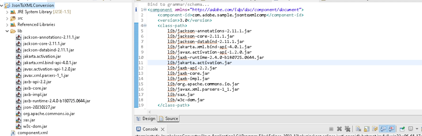 Its giving proper result in my eclipse but when I created the component and trying to start the service its giving error "