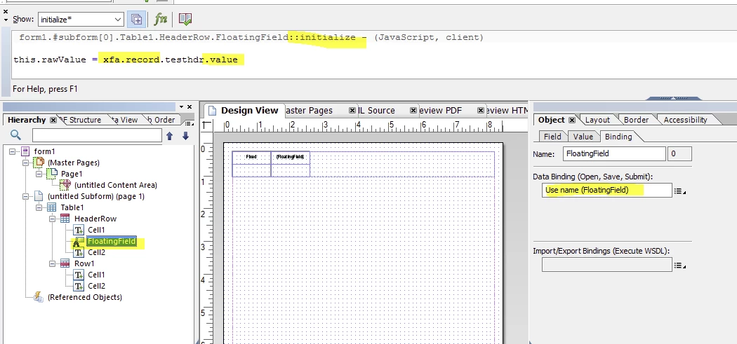 I have a form which has a floating field in the header of a table that is changed prior to filling out the form. When the table flows to the next page, I have it so that the headers populate to the next page. The problem is that the floating field information in the header does not appear on the next page. It's just a blank space. Only the other headers, which are not changed, appears on the next page. What can I do?