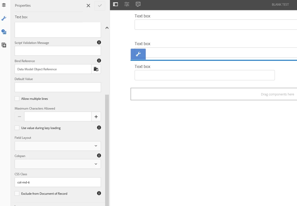 Results: While the actual texbox div will accept col-md-6, the parent's parent stays at col-md-12.