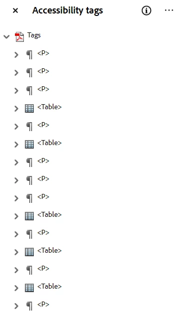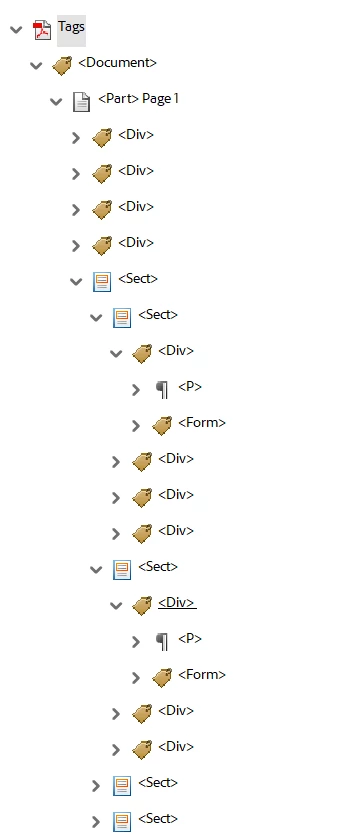 The tags structure generated in the static PDF has tags something like shown below: